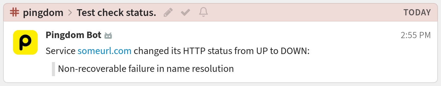 Zulip supports integration with Pingdom and can notify you of uptime status changes from your Pingdom dashboard.